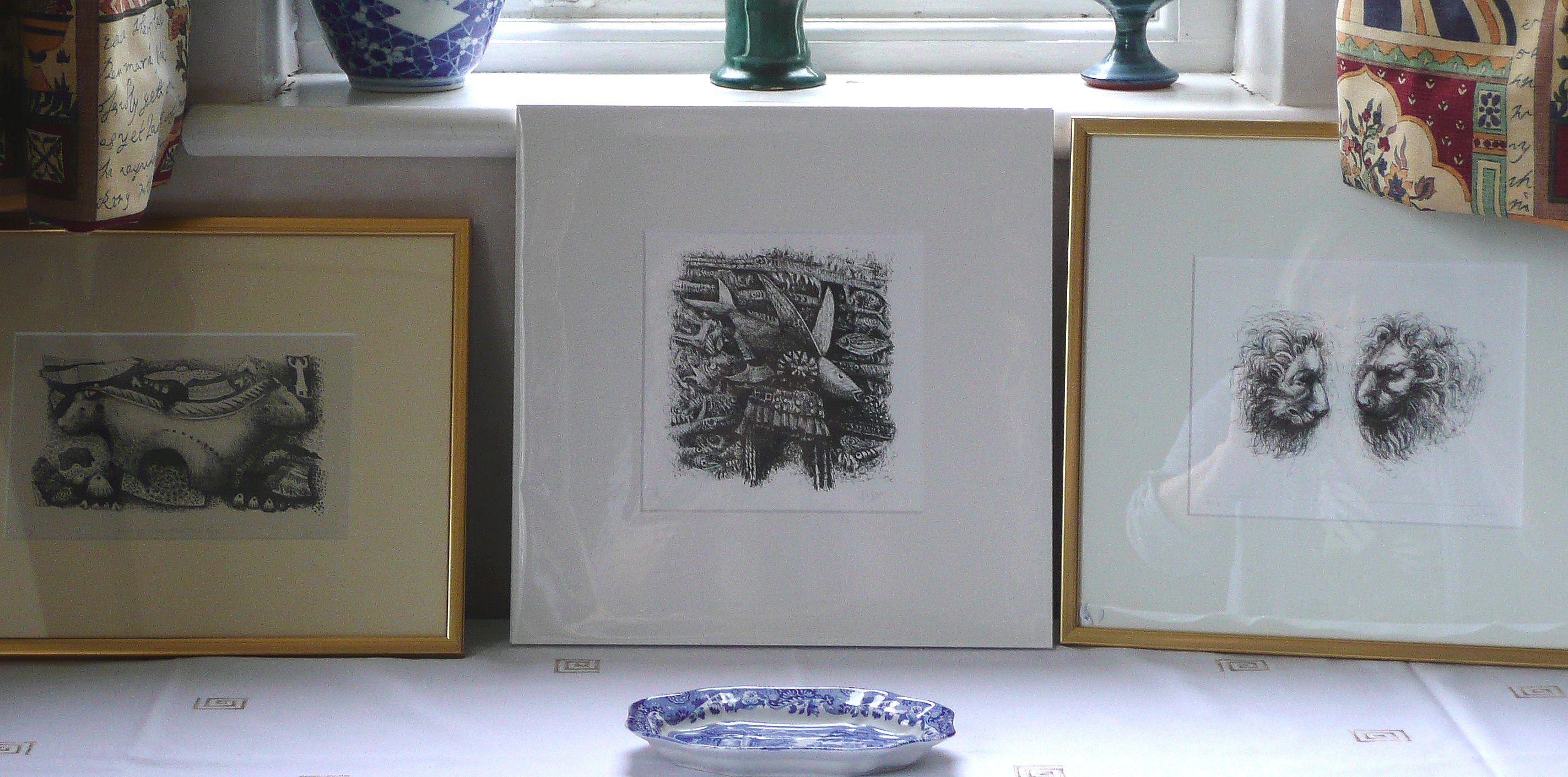 My contribution was a show of paintings of London and the Yorkshire landscape, together with more experimental drawings and prints, and plate lithographs derived from museum drawing mixed with a little imagination.