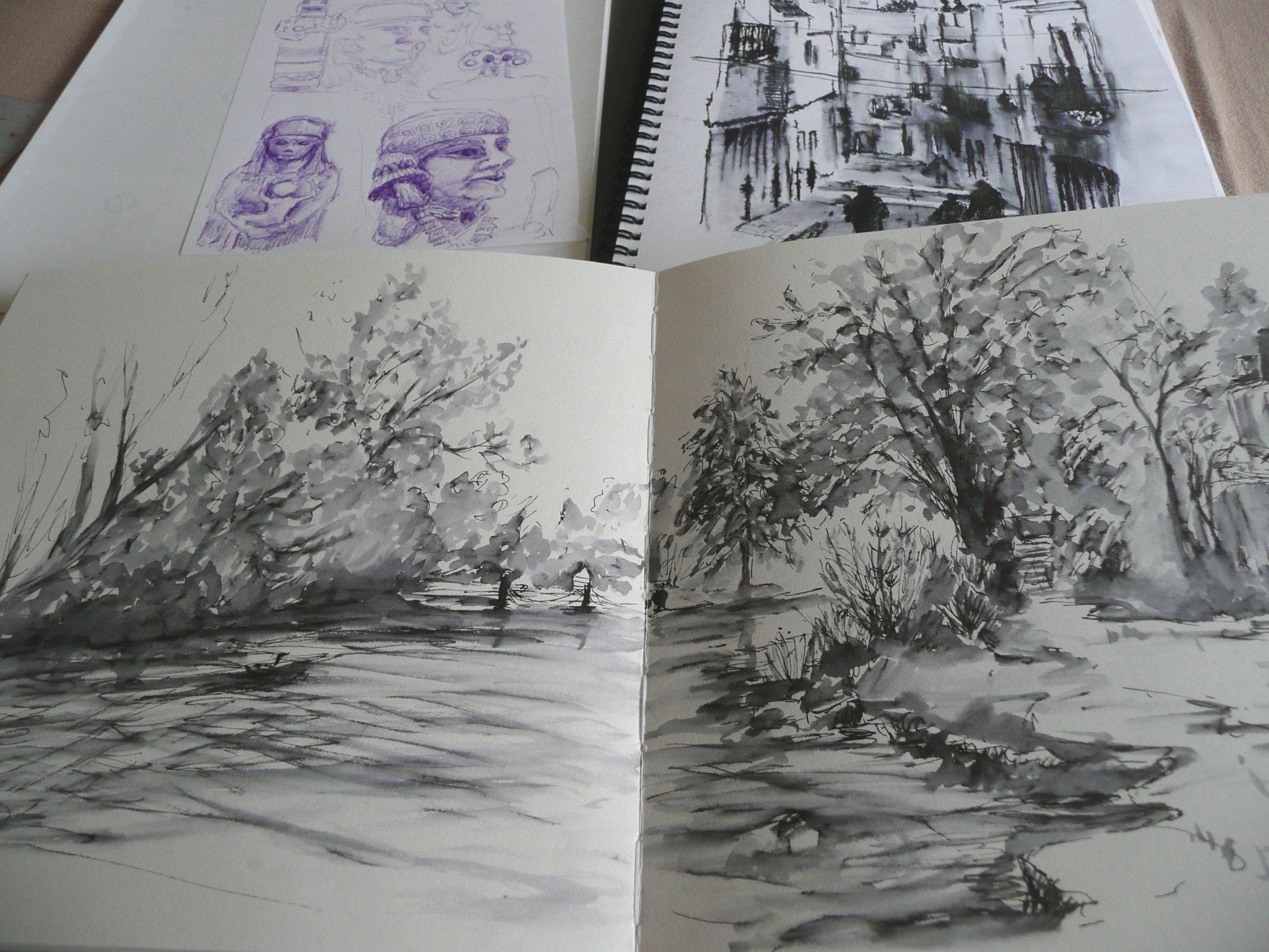 A selection of sketchbook drawings made in Spain, Nice, the Thames, the British Museum and on trains were also displayed.