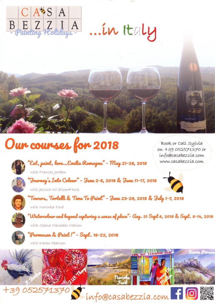 I have been invited to tutor a painting holiday just outside the delightful village of Bardi, near Parma in Northern Italy, in May/June 2019. The poster below advertises this year’s events at Casa Bezzia.