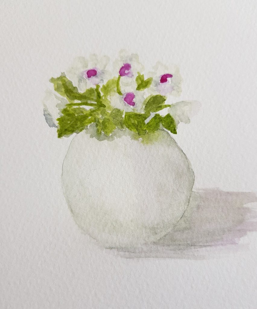 My personal preference for the lilacs is the simplicity of the white backdrop, but that is today, on another occasion I may feel in the mood for something patterned and jolly. As always think about the tonal contrasts in the painting as well as the colour. I think that is why I am so drawn to enjoy painting the white set up.