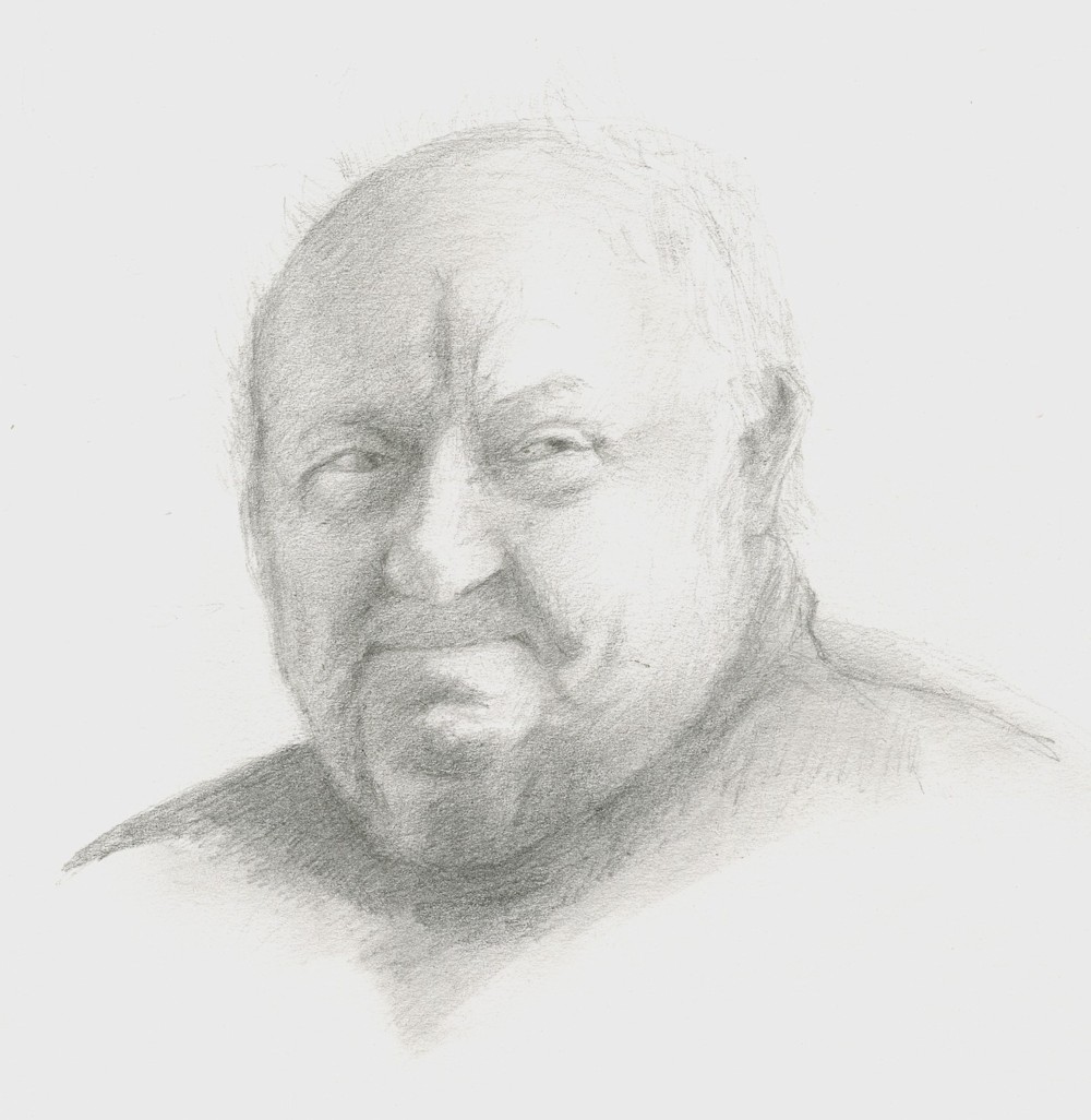 The drawing above was made from a photo but I so need to make a colour portrait with a backdrop of his tools and collections.  The drawing is very much in the chiarascuro tradition of revealing the three dimensional form by the use of dramatic lighting.  The near frontal view and three quarter view give a huge amount of information about the sitter, including hints of the profile view as well as the frontal view.  It is probably the view favoured most by portrait artists and I recommend you to study portraits by Caravaggio, Rembrandt and Vermeer who all used chiarascuro lighting to reveal the form of their subjects.