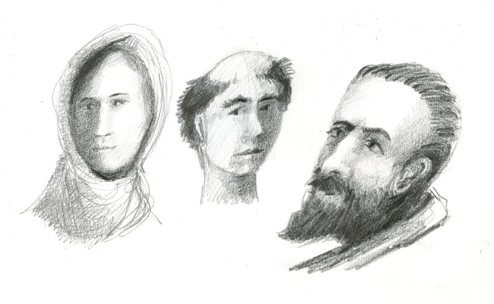 It is hoped the images chosen for this post will help you think about drawing young and old, how much else to include besides the head, and a nod to putting your model in context to tell a story.