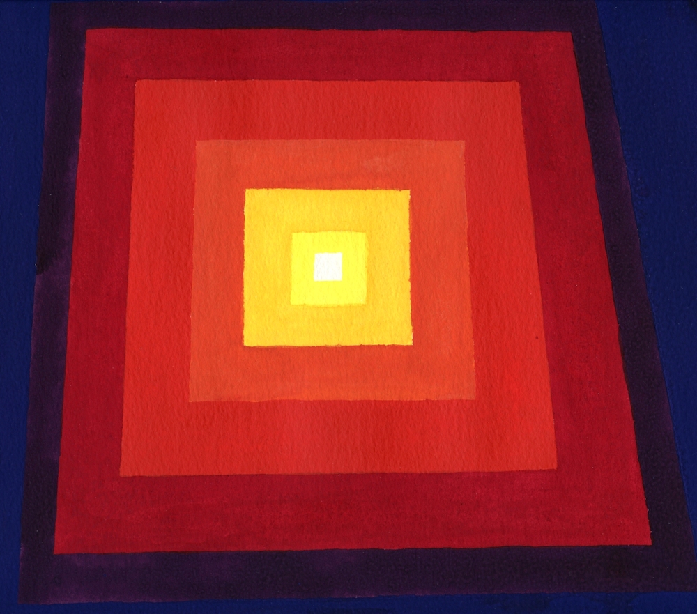 Another way of using colour is to surround a saturated colour (pure hue) with less saturated colours or the complement of the pure hue at the centre. Again it usually works best if the surrounding hues are similar tonally or darker than the luminous area.