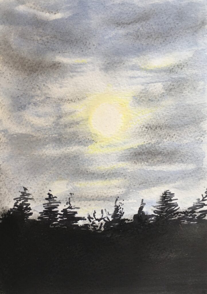 This week’s challenge is the moon and its effects on the landscape. You may paint an observed scene or introduce something more imaginative. The works of Turner and Samuel Palmer combine large elements of observation with imagination. Much smaller than the sun its size is often exaggerated in paintings; look at Turner’s watercolour sketch of Shields Lighthouse, 1823-26.