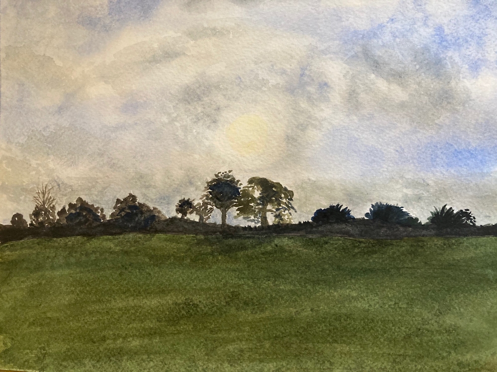 This week’s project is to depict the sun and effects of its luminosity on the landscape. As light sources, natural and manufactured are the topics for the next few weeks, I thought it would be useful to consider some general aspects of depicting luminosity.