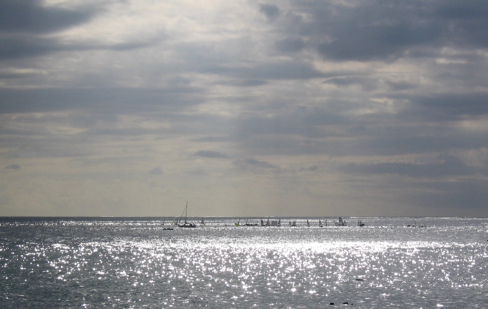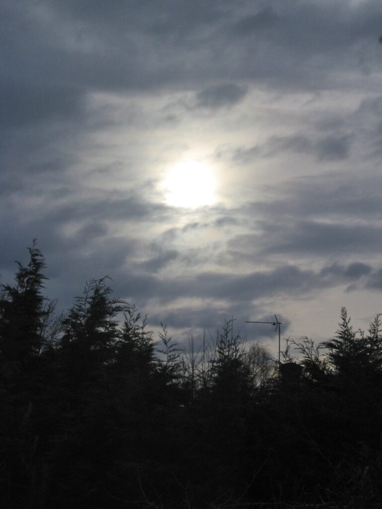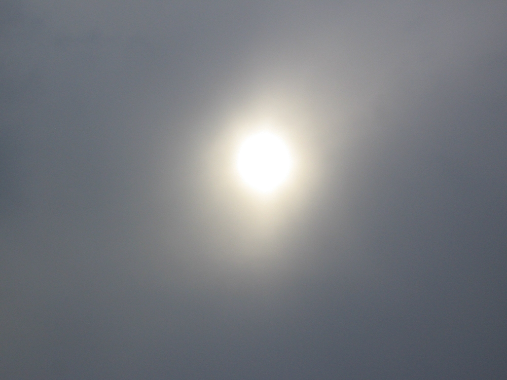Even on the dullest day the sun appears white at the centre surrounded by a ring of pale yellow. At sunset the sun may appear white or yellow at the centre and surrounded by red orange colours or the whole sun may appear bright orange/red. The duller the day the more monochrome it appears and the sun’s reflection in water behaves in the same way.