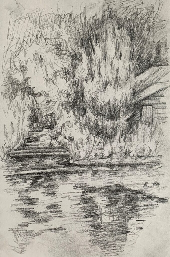 Such a treat today to be sitting outside drawing subjects we have become familiar with using photo reference. Before publishing I added more tone to these sketches from memory.