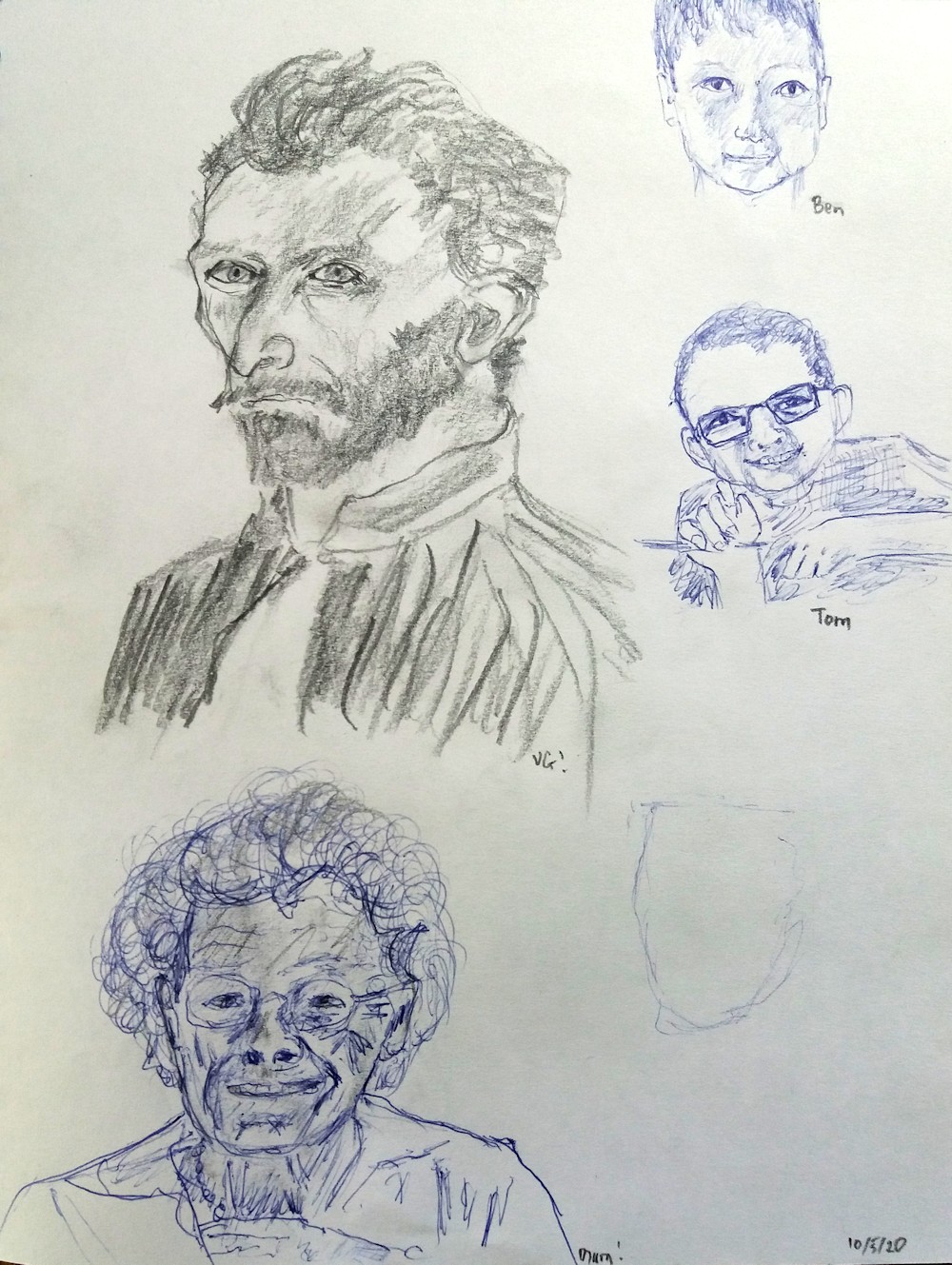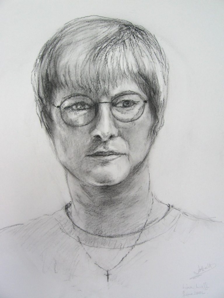 Tackle a portrait of someone you know, perhaps a family member either from life or from a photograph. Try to draw directly or scale up your reference by using a grid. Use a grid just to place the main features then draw everything with as free and fluent a hand as you can. But please do not trace your image as it may become wooden and not have your own personality in the line. The way we draw is as unique as our signature.