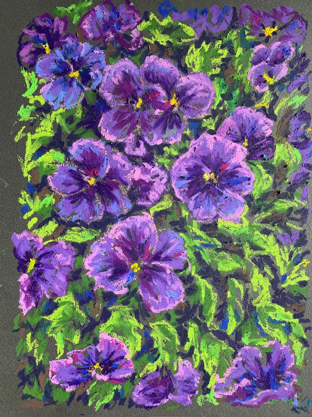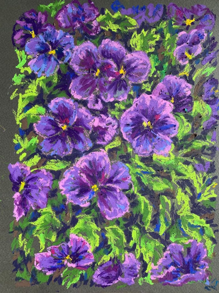 Heather has very skillfully suggested the lilacs without drawing every tiny flower.