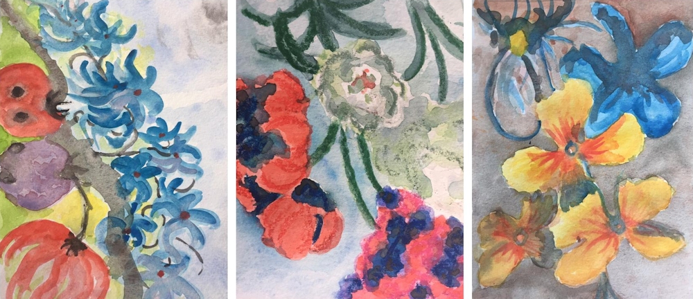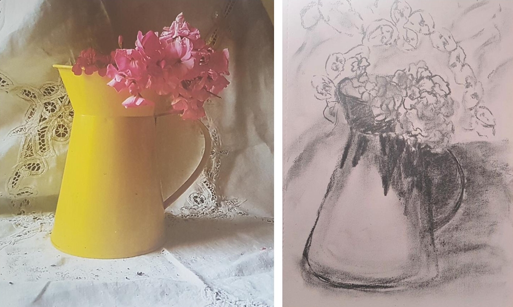 If you enjoy this challenge, try another floral still life exploration with brightly coloured flowers and investigate harmonious (analogous) and discordant (complementary) colour combinations.