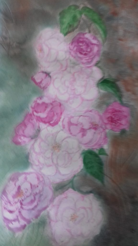 Try to photograph the same view of the flowers each time so that you can compare like with like. As you can see I added a bloom after the first photo so the images are not totally consistent but good enough for you to get the drift. At the end of your exploration you may of course wish to change things before you start painting. There is always something that needs a tweak!
