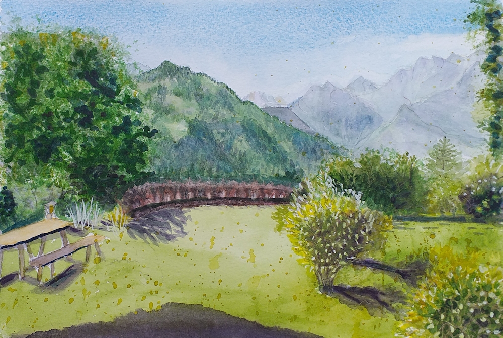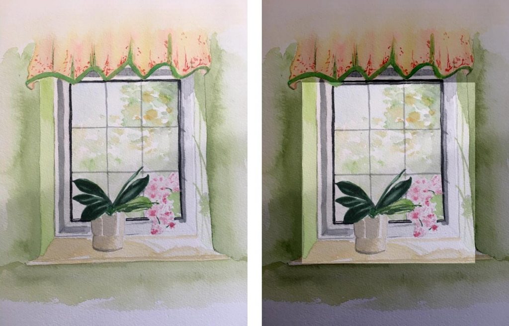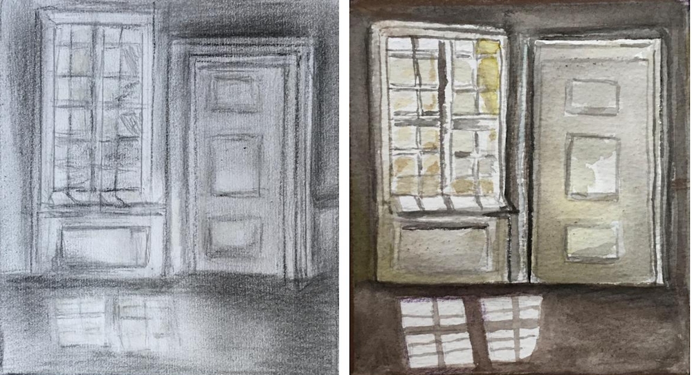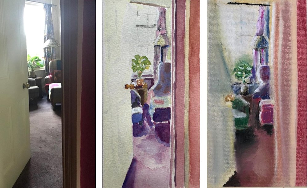 3a. If you have access to a photocopier you could photocopy a landscape or room interior in greyscale on to watercolour or other substantial paper. It would be great to make two copies of the same image and glaze one in a very subtle way with very dilute glazes and a much more vibrant version with bolder colours and some more concentrated colour.