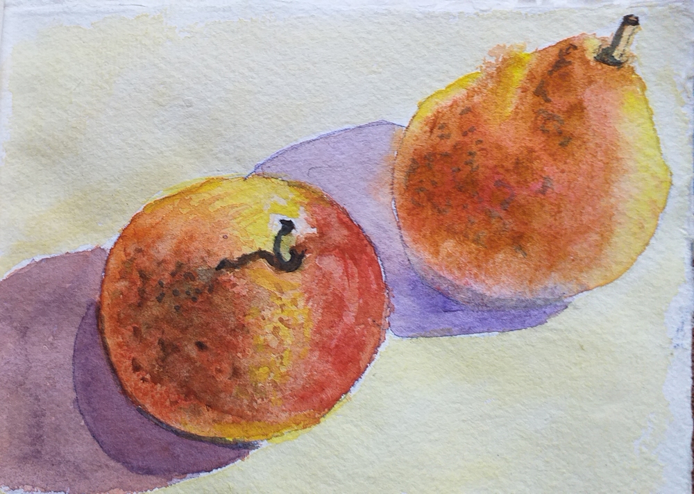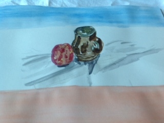 There are several ways of painting shadows and the colours used will depend on what you see and how you wish to interpret what you see. We saw last week that some artists choose to work in an extremely representational style while others are more inventive with colour and tone. Very often you will only need one colour mix for a shadow, sometimes the colour of the object mixed with a colour that will mute the colour slightly e,g, a purple object may need a purple gray shadow. In daylight on a bright day shadows are often bluish reflecting the colour of the sky.