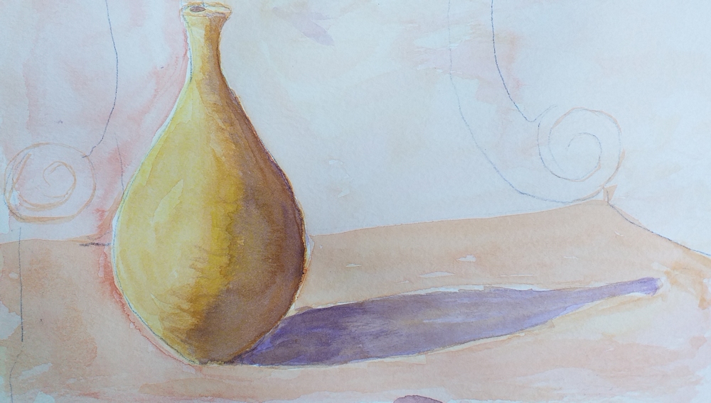 Concentrate on the largest shapes first, then add the details of fluted edges etc. You may choose to paint pattern directly with the brush after putting in the main washes or to indicate the main areas of decoration very lightly with pencil.