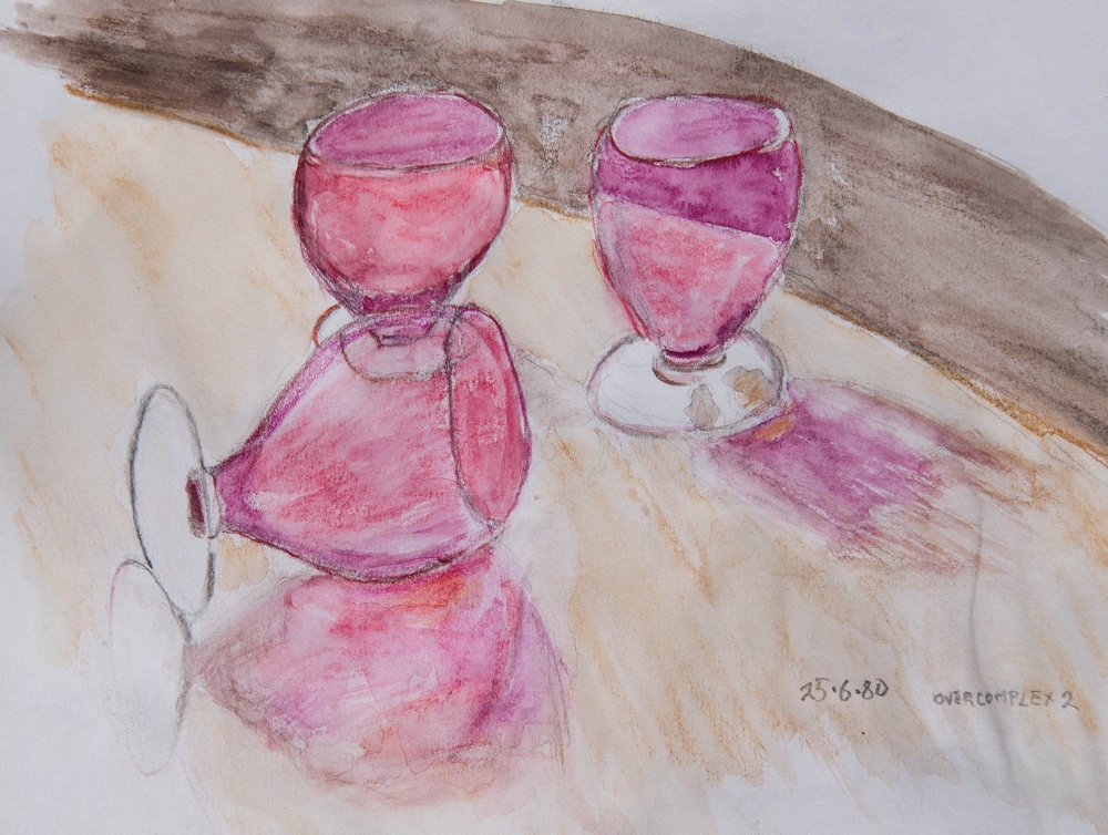 Before adding washes observe how the light falls on the objects and note if there are any areas you need to remain absolutely white. These may be very small; note the base of the cup, handle and part of the saucer rim and a couple of reflections in the photo above. You can do this by either leaving the paper white or using masking fluid. Slightly more subtle lights can be achieved by lifting out. If lit from the side the difference in tone between the light areas and more shaded parts may be dramatic and obvious, but where the light is diffuse or from more than one direction this may not be so clear. Start by washing in the main areas of tone and the background fairly lightly at first then add further washes till these are built up sufficiently before adding the pattern.
