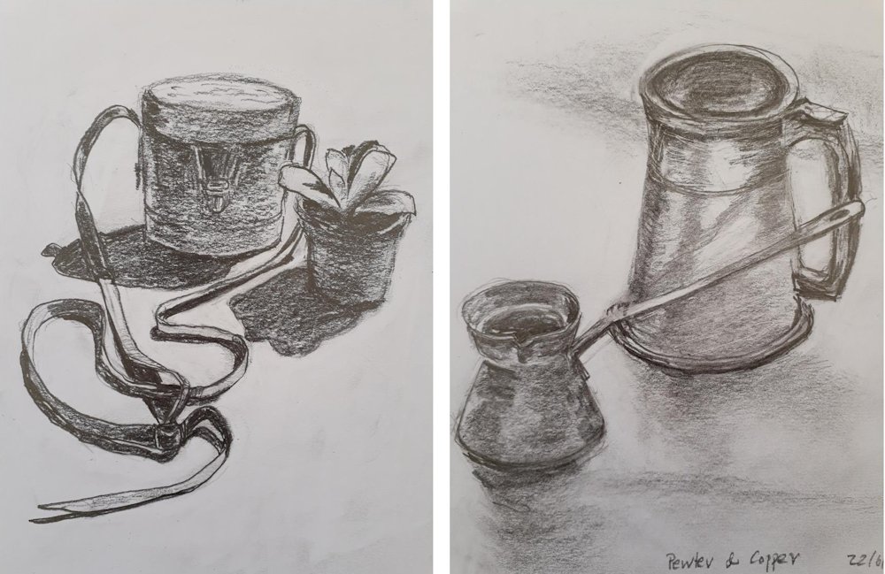 In some ways it is easier to draw from a photograph but photographs can have unwanted distortions especially if you take a shot very close to the object. These distortions can be largely avoided by taking the shot at a distance from the object and zooming in.
