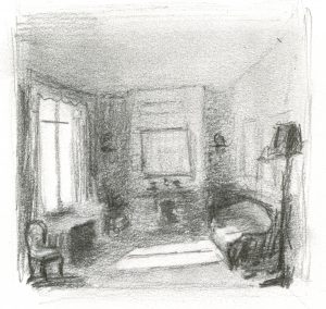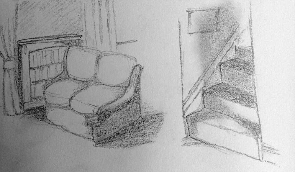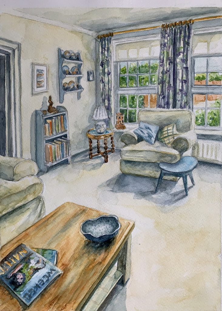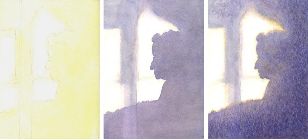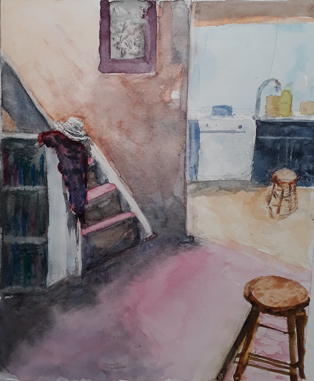 This week’s project is to produce a painting of an interior that includes cast shadows so I’m starting by showing you one way of tackling shadows in watercolour. It’s in place of the short live demo I would usually give my workshop participants and I hope it will be helpful. Artists for reference and some ideas for painting interiors appear later in the post.