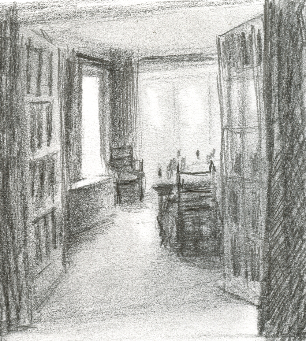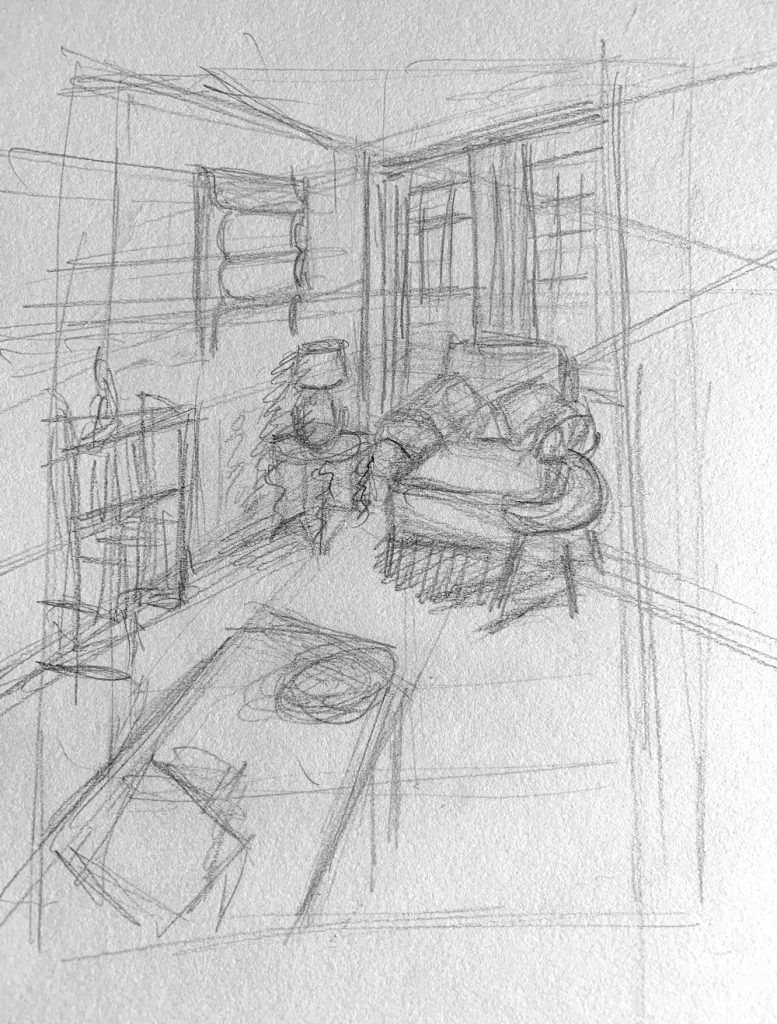 Getting the drawing right isn’t essential but if you would like to end up with a convincing structure there are a few things you should think about. If you feel confident with the brush you may like to go straight in with paint but reading through the following and looking at the photos may help your observation skills and thoughts about the composition.