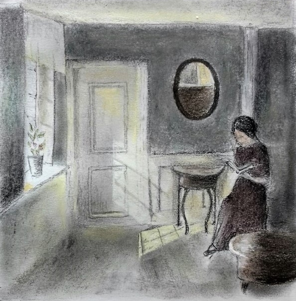 You could choose to make your versions of a Matisse interior for this exercise; judging the tones will be a challenge. Or you could make your version of a Hammershøi interior. His paintings are very tonal with very subdued colour, so getting the under painting right will be much easier. It would be a good exercise to do one version with subtle glazes echoing Hammershøi’s use of colour, and a second with vibrant glazes of bright transparent colours. Remember in either case you can glaze part or all of the painting and you can further modify the colour and tone by overlaying glazes.