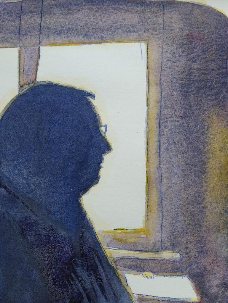 Paint a shadow shape in a cool blue or blue/purple. Leave to dry.