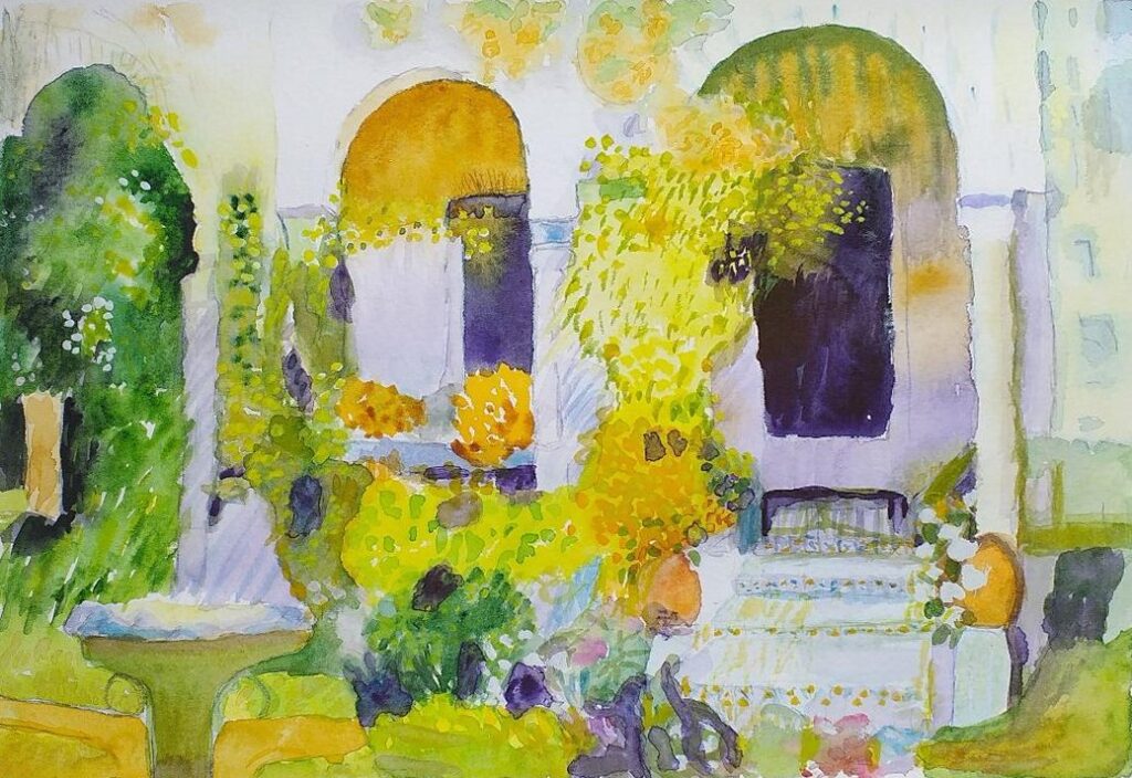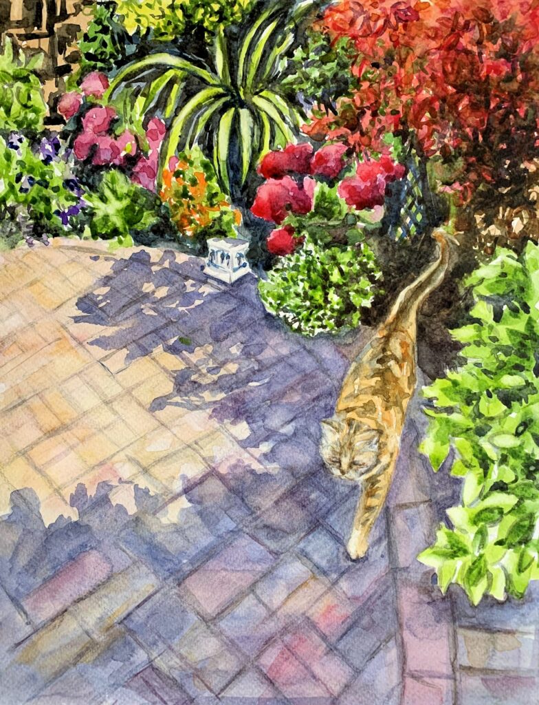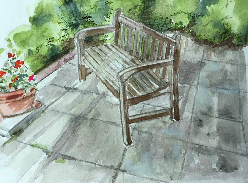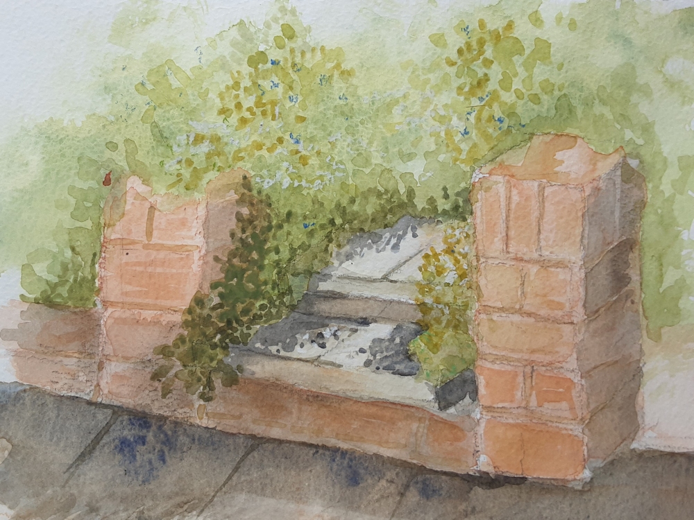 One of the most beautiful examples of soft and harder shadows in watercolour is a work called “Corfu: Lights and Shadows” painted in 1909 by John Singer Sargent and a great mix of watercolour applied both wet in wet and wet on dry. If you have a wall on which a tree or shrub casts its shadow try and use similar techniques.
