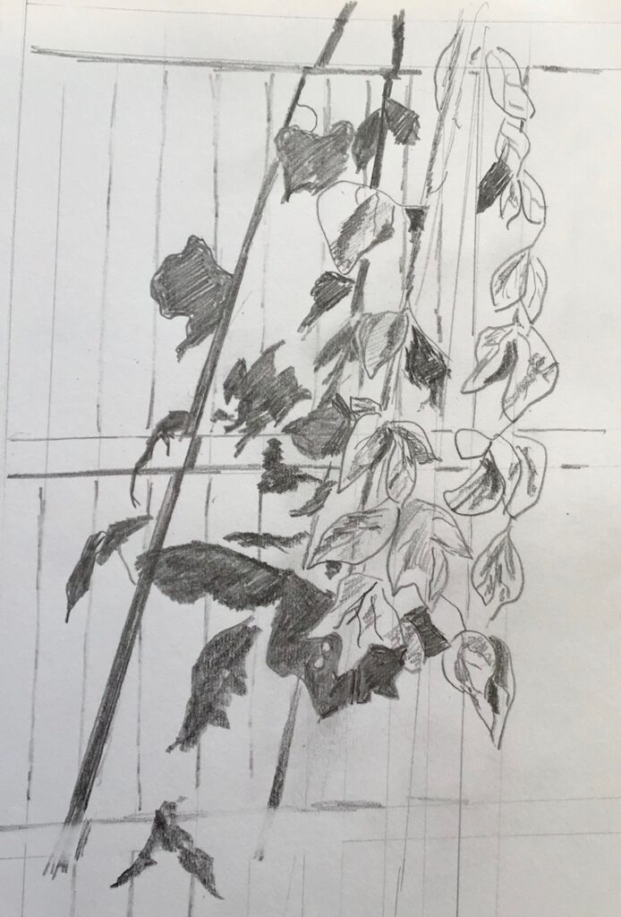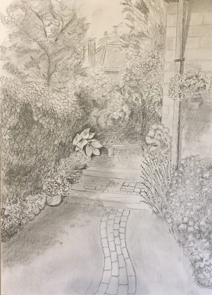 Composition: You may like to make a tiny tonal sketch or even two or three to work out a successful composition and to observe the overall shapes and tones. These should made in pencil and be no more than about 2 inches by 3 inches. Remember to include suggestions of where background objects you wish to include, garden sheds, fences etc. Also start to think about what you may leave out.