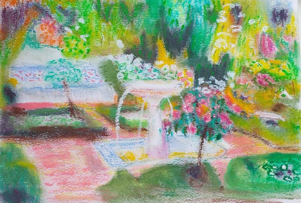 Do fix your work as you add layers of pastel, but after your last touches of bright pastel are added, fix very sparingly or leave the work out for a few days. In our fairly humid climate the pastel will become somewhat fixed just by the moisture in the air. However if your work has to travel, a light spray is advisable with the nozzle no nearer to the work than 2 feet.