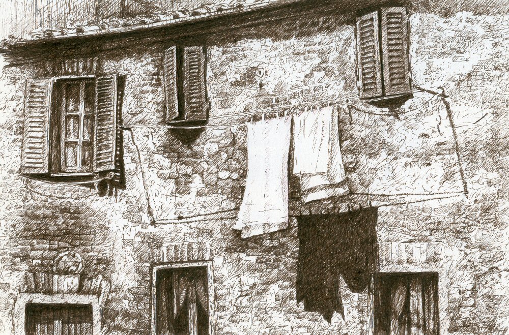 Why Ink and wash and not line and wash? I had thought of calling this short course line and wash, but what about all those little marks, dots and splatters that so often add to the character of an ink and watercolour drawing? And what about the decision to paint an area of ink instead of a line?