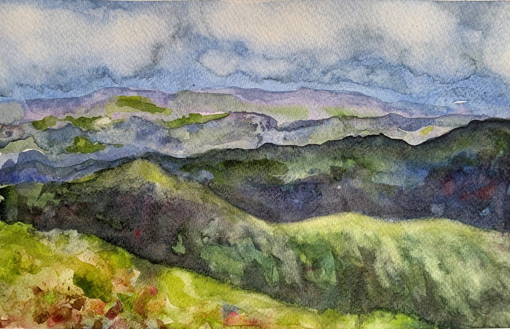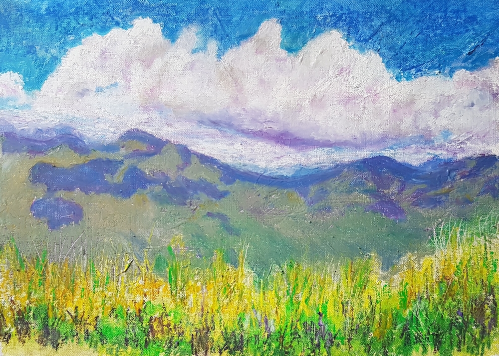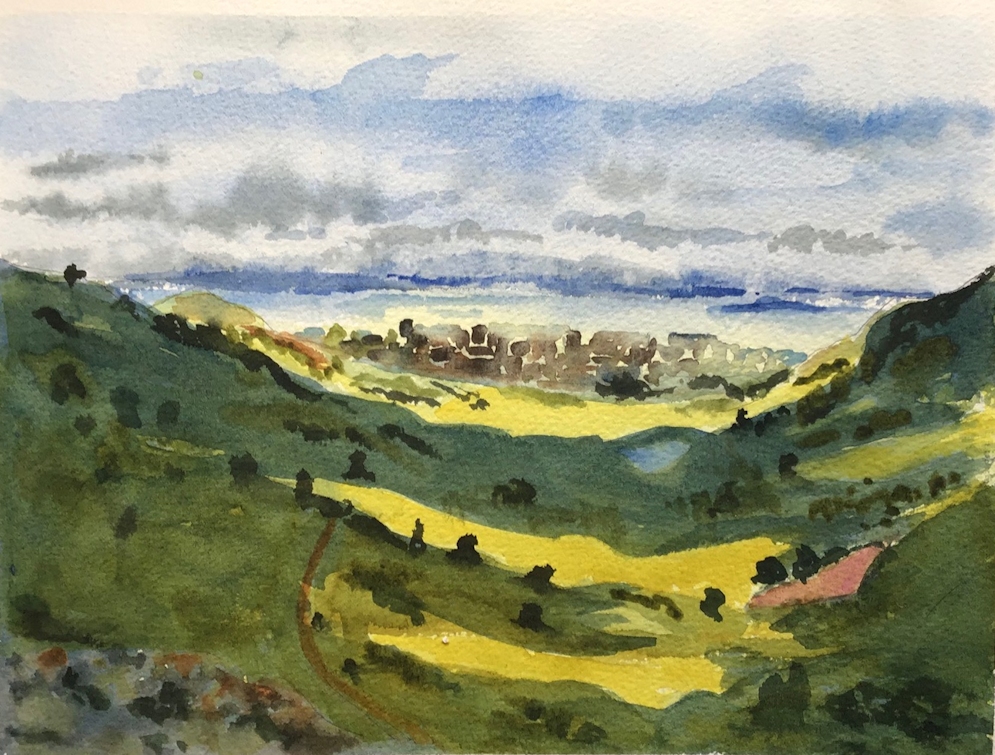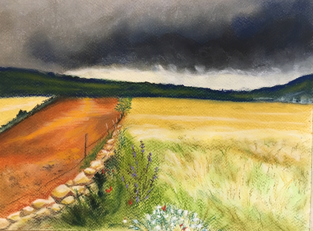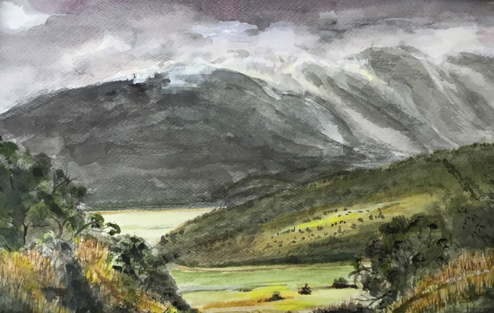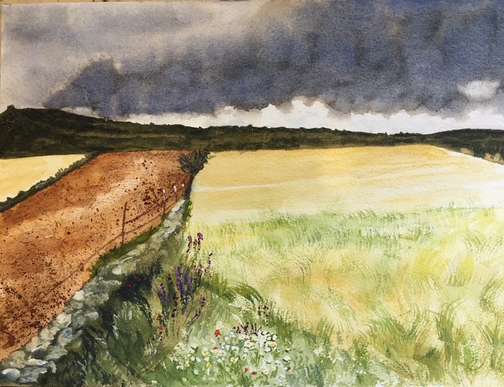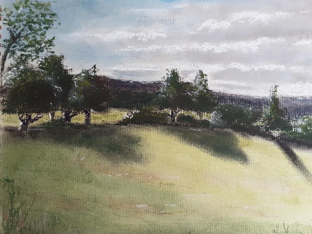 When there is wind and patchy cloud cover this makes things hard for the en plein air painter as the tones can vary in seconds and changes in tone can even mislead the eye into failing to read the topology of the landscape correctly. This should never deter you from working outside and gaining that firsthand experience of the landscape. It does mean that whether sketching as a preparation for painting, or painting outside, you have to watch the landscape and decide swiftly on where the shadow areas are and stay with this decision throughout your study. Cloud shadows can change far more rapidly than shadows caused by the elevation of the sun at different times of day.