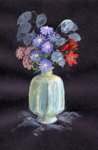 Use gouache and watercolour to paint a posy of Autumn or Winter flowers, berries and seed heads on black paper.
