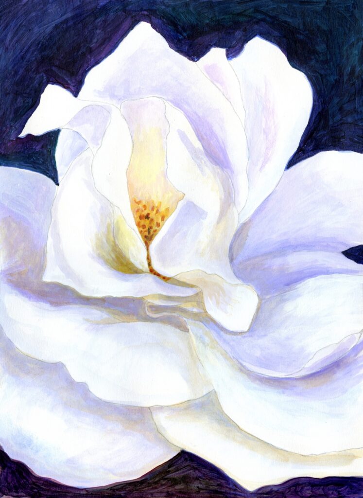 Paint a flower larger than life in acrylic, referencing the flower paintings of Georgia O’Keeffe.