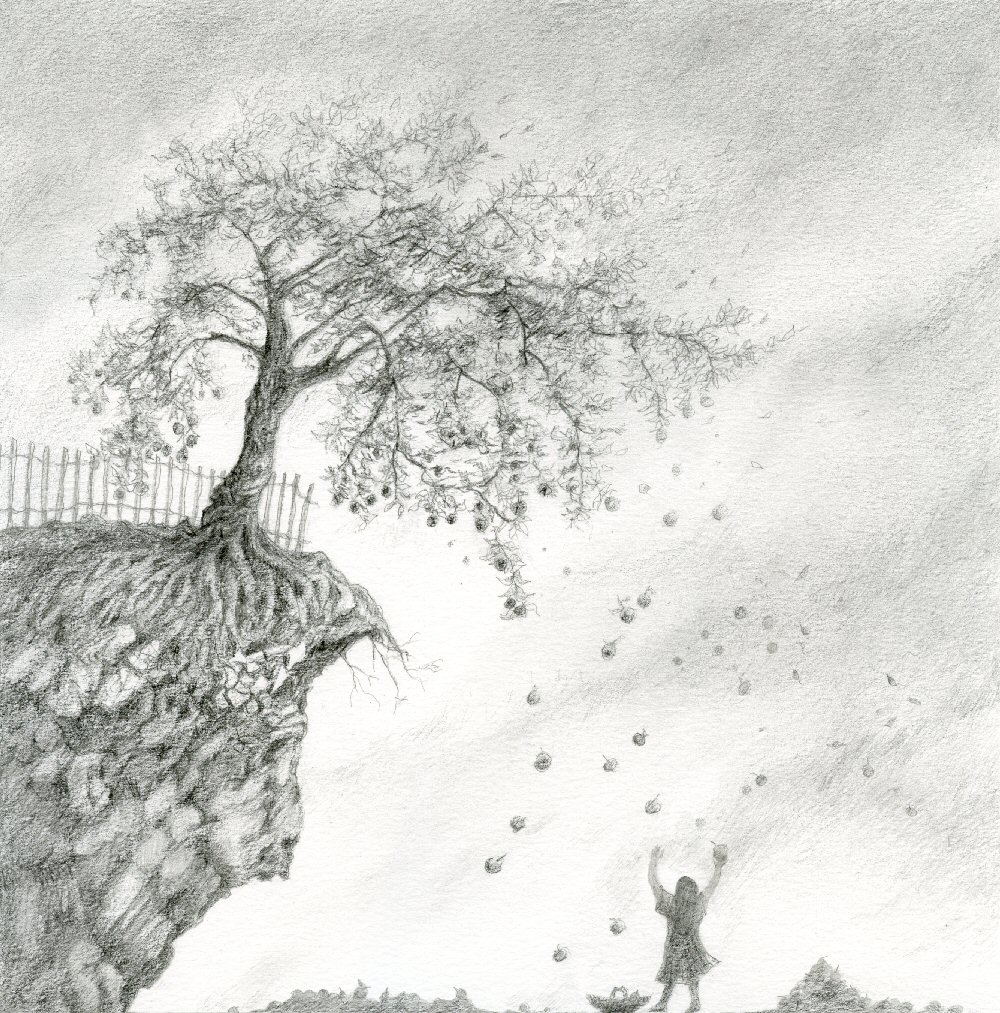 The apples falling off the edge of my garden represent ideas. It is amazing when anyone values one of them enough to catch it!