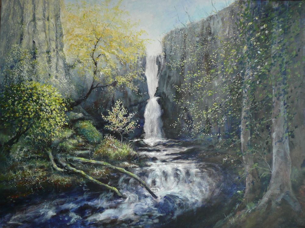 A delightful falls above the village of Stainforth in North Yorkshire where huge beech trees grow toward the light from the deep gorge. There is a rock ledge where one can sit and draw or simply relax and watch the water play.