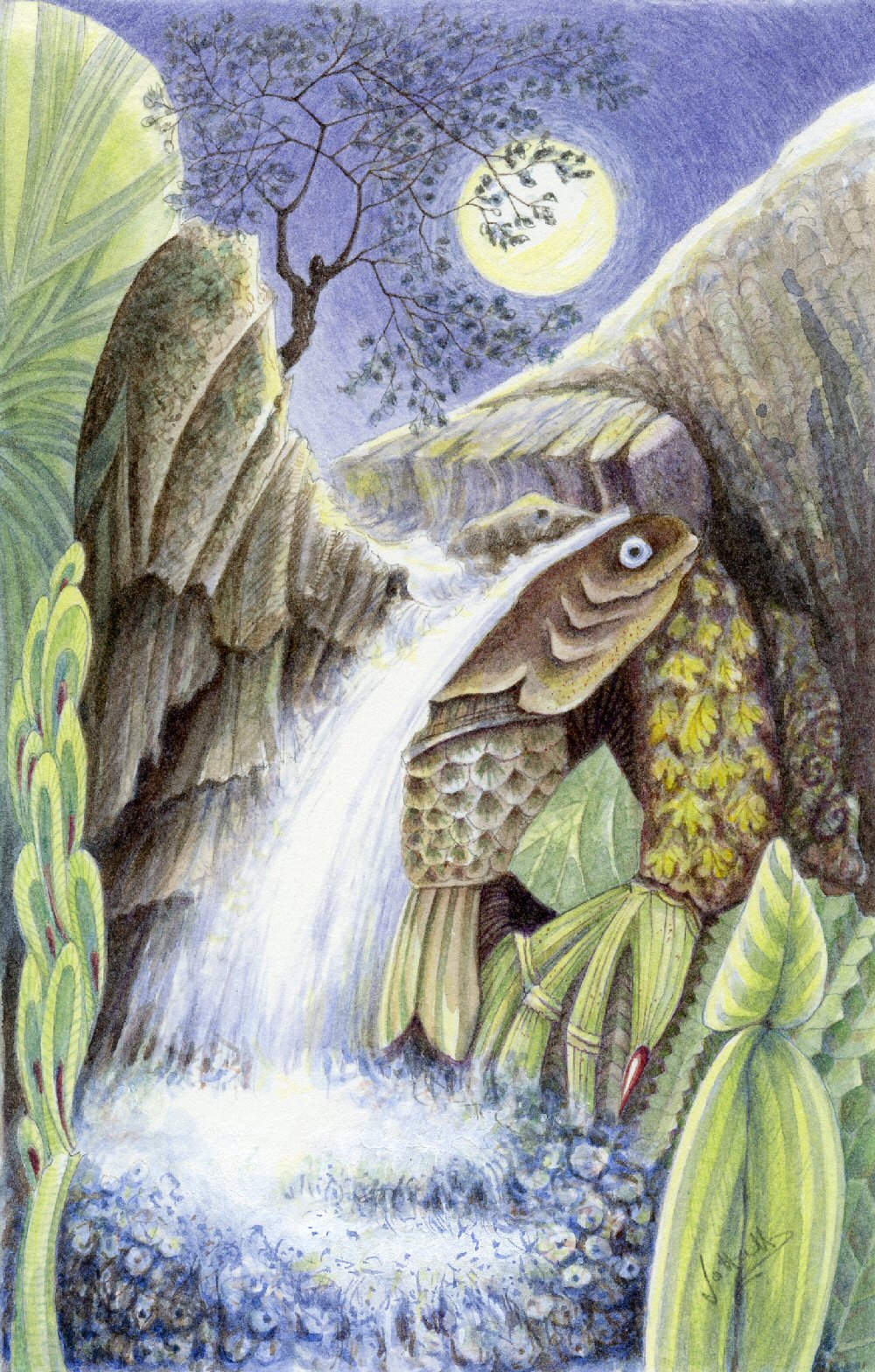 The first of three watercolours inspired by the rocks and trees around the Pecca Falls near Ingleton. They are reminders that spring not only brings new life, but also predators, ‘crimson in tooth and claw’.